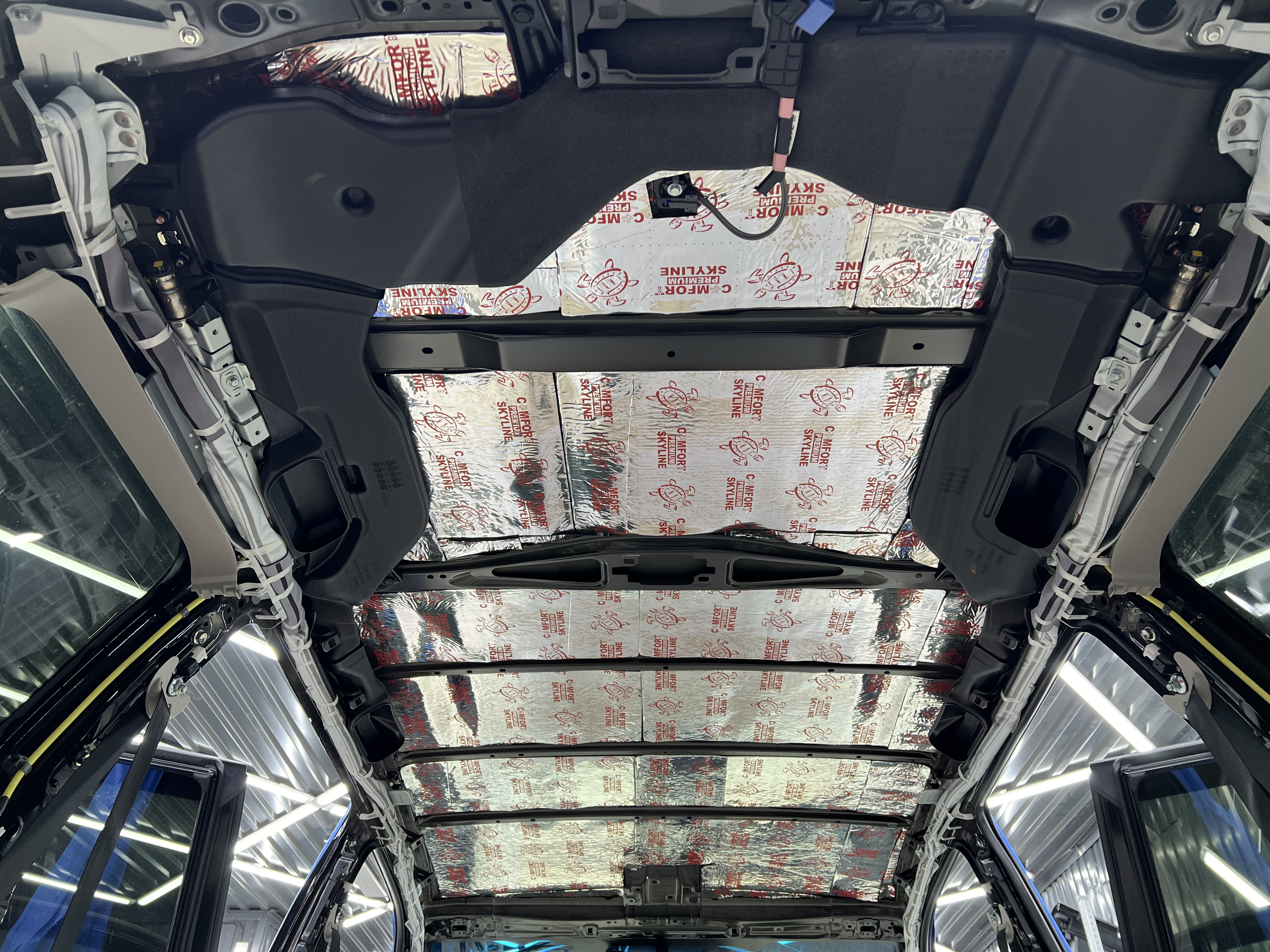 Вторым слоем уложили Шумоизоляцию Comfort Mat Premium Skyline, легкий и эффективный материал, завершающий изоляцию.