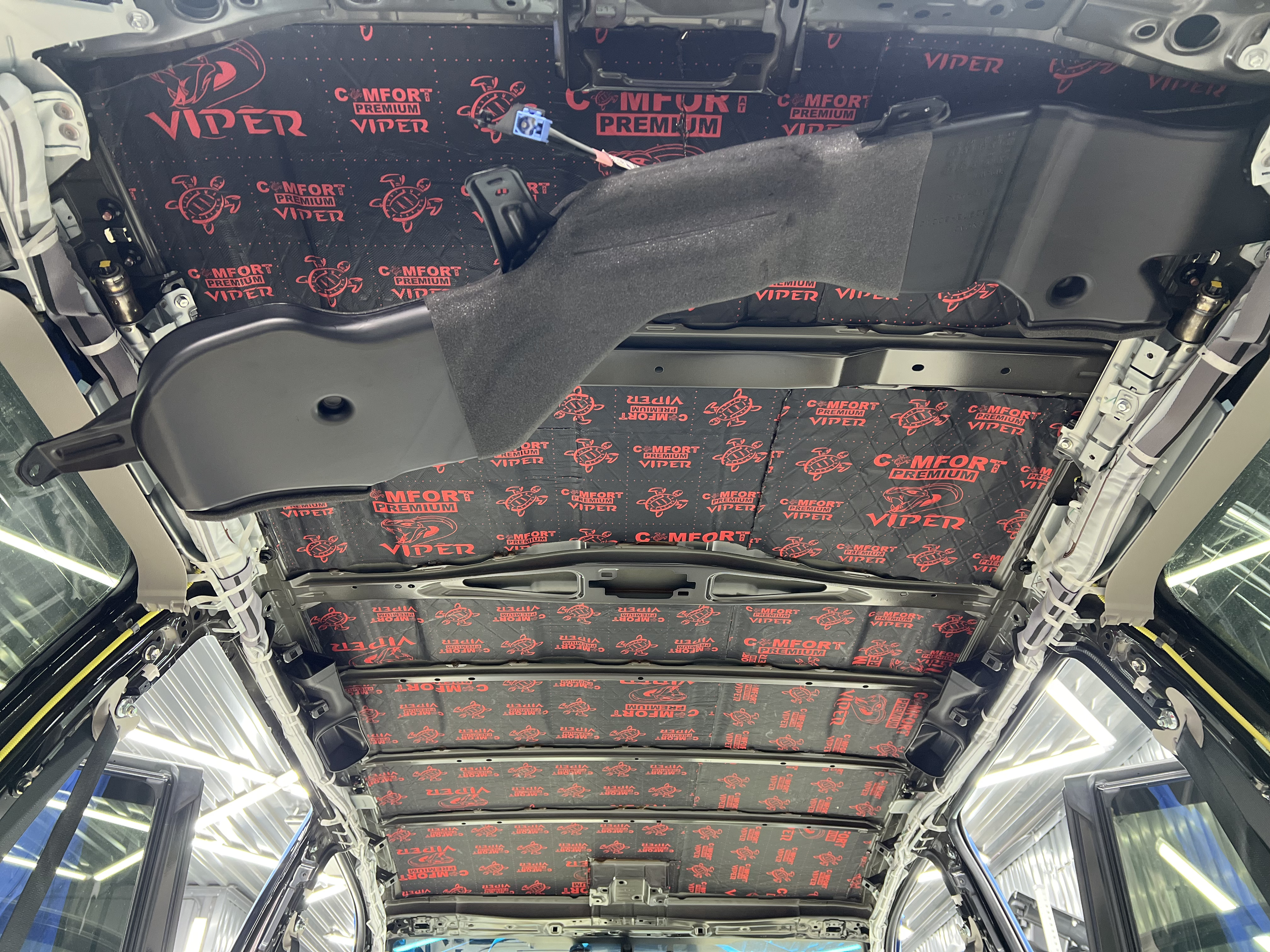 Первым слоем нанесли Виброизоляцию Comfort Mat Viper, которая гасит вибрации металла.